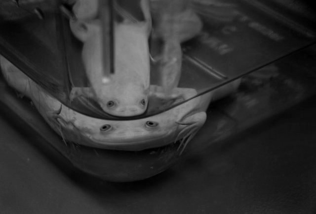 Bir başka laboratuvarda doğmuş ve tek varlık sebebi belki de hiç bir sonuç alınamayacak bir deneye materyal sağlamak olan bu kurbağa yüksek olasılıkla bir kaç gün önce beraber yüzdüğü arkadaşının embriyoları üzerinde çalışan Duygu’yu seyrederken, bu penceresiz, florosan ışıkla aydınlanan mum kokulu odada neler olup bittiği ile ilgili pratik tahminlerin ötesinde pek bir fikri yok muhtemelen. Bu albino kurbağa ile birbirimizi en iyi anladığımız konu bu olmalı.